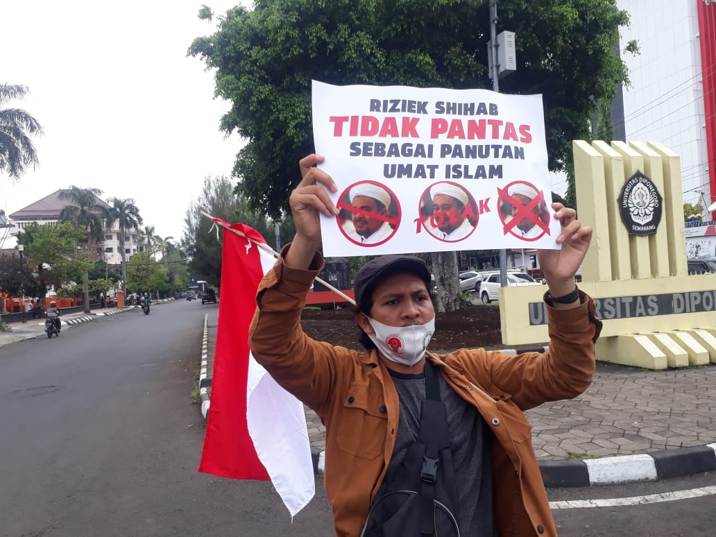 Koordinator Aksi (Korak) Rico Septian menuturkan, di Kota Semarang ini sudah adem, ayem dan damai, jangan sampai warga Kota Semarang terprovokasi terhadap ulah Riziek Shihab setelah pulang ke tanah air beberapa waktu yang lalu. “Kami tidak menolak kepulangan Riziek Shihab di tanah air, tapi kami minta Riziek Shihab diam, tiap buat gerakan-gerakan yang bisa membuat gaduh, resah dan tidak nyaman masyarakat. Oleh Karena itu, biar warga Semarang dan Jawa Tengah tetap kondusif, kami menolak Riziek Shihab datang ke Semarang dan Jawa Tengah pada umumnya,” ucap dia disela aksi berlangsung