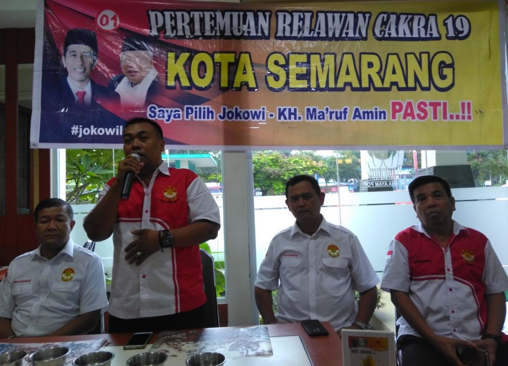 SEMARANG II SemarNews.com – Ketua Pusat Tjakra #19JokowiLagi Letjen TNI (purn) Eko Wiratmoko dalam rapat koordinasi pemenangan Jokowi-Ma’ruf di Rumah Makan Padang Simpang Raya Semarang menegaskan keberadaan komunitasnya sebagai relawan yang secara murni tergerak hatinya untuk memenangkan Jokowi-Ma’ruf.