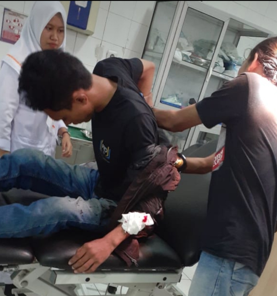 Karena darah yg mengalir akibat tebasan sabit tadi terus-terusan dan kawan saya sudah merasa kesakitan, kami hanya memikirkan keselamatan korban lalu dihantarkanlah ke RS Tugu dengan dibantu oleh kawan-kawan yang ada dikontrakan PMII Abdurrahman Wahid.