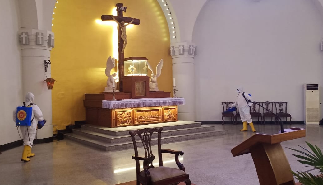 SEMARANG II SemarNwes.com – Tim Velox Badan Intelejen Negara (BIN) melakukan penyemprotan disinfektan di Gereja Katedral Santa Perawan Maria Ratu Rosario Suci Kota Semarang, Rabu (11/11). Penyemprotan disinfektan tersebut sebagai upaya pencegahan Covid-19.